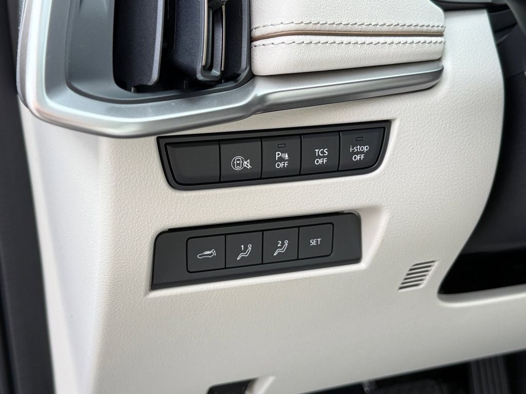 ', 12 Speakers, 2nd-Row Captain's Chairs, 3rd row seats: bench, 4-Wheel Disc Brakes, ABS brakes, Active Cruise Control, Air Conditioning, Alloy wheels, AM/FM radio: SiriusXM, Artisan Red Premium Paint Charge, Auto High-beam Headlights, Auto-dimming door mirrors, Automatic temperature control, Brake assist, Bumpers: body-color, Compass, Delay-off headlights, Driver door bin, Driver vanity mirror, Dual front impact airbags, Dual front side impact airbags, E911 Automatic Emergency Notification, Electronic Stability Control, Emergency communication system: MAZDA CONNECT, Four wheel independent suspension, Front Bucket Seats, Front Center Armrest w/Storage, Front dual zone A/C, Front reading lights, Fully automatic headlights, Garage door transmitter: HomeLink, Heads-Up Display, Heated door mirrors, Heated front seats, Heated rear seats, Heated steering wheel, Heated/Ventilated Front Bucket Seats, Illuminated entry, Infotainment System Voice Command, Knee airbag, Leather Shift Knob, Leather steering wheel, Low tire pressure warning, Mazda Connected Services, Mazda Online Navigation, Memory seat, Nappa Leather Seat Trim, Navigation system: MAZDA CONNECT, Occupant sensing airbag, Outside temperature display, Overhead airbag, Overhead console, Panic alarm, Passenger door bin, Passenger vanity mirror, Power door mirrors, Power driver seat, Power Liftgate, Power moonroof, Power passenger seat, Power steering, Power windows, Radio Broadcast Data System Program Information, Radio data system, Radio: : AM/FM w/HD/Bose 12-Speaker Sound System, Rain sensing wipers, Rear air conditioning, Rear anti-roll bar, Rear reading lights, Rear seat center armrest, Rear window defroster, Rear window wiper, Remote keyless entry, Security system, SMS Text Msg Audio Delivery and Reply, Speed control, Speed-sensing steering, Split folding rear seat, Spoiler, Steering wheel mounted audio controls, Tachometer, Telescoping steering wheel, Tilt steering wheel, Traction control, Trip computer, Turn signal indicator mirrors, Variably intermittent wipers, Ventilated front seats, and Wheels: 21 x 9.5J Silver Metallic Aluminum Alloy. Price includes: $2000 - Customer Cash. Exp. 03/31/2026