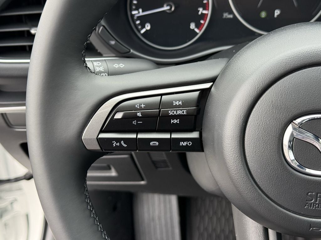 ', 4-Wheel Disc Brakes, 8 Speakers, ABS brakes, Active Cruise Control, Air Conditioning, Alloy wheels, AM/FM radio, AppLink/Apple CarPlay and Android Auto, Auto High-beam Headlights, Automatic temperature control, Brake assist, Bumpers: body-color, Compass, Delay-off headlights, Driver door bin, Driver vanity mirror, Dual front impact airbags, Dual front side impact airbags, Electronic Stability Control, Emergency communication system, Exterior Parking Camera Rear, Front Bucket Seats, Front Center Armrest, Front dual zone A/C, Front reading lights, Front wheel independent suspension, Fully automatic headlights, Heated door mirrors, Heated Front Bucket Seats, Heated front seats, High Wall All-Weather Floor Mats, Illuminated entry, Knee airbag, Leather Shift Knob, Leather steering wheel, Leatherette Seat Trim, Low tire pressure warning, MAZDA CONNECT Infotainment System, Memory seat, Occupant sensing airbag, Outside temperature display, Overhead airbag, Overhead console, Panic alarm, Passenger door bin, Passenger vanity mirror, Power door mirrors, Power driver seat, Power moonroof, Power steering, Power windows, Radio data system, Radio: AM/FM Audio System, Rain sensing wipers, Rear seat center armrest, Rear side impact airbag, Rear window defroster, Remote keyless entry, Snowflake White Pearl Mica Paint Charge, Speed control, Speed-sensing steering, Split folding rear seat, Steering wheel mounted audio controls, Tachometer, Telescoping steering wheel, Tilt steering wheel, Traction control, Trip computer, Turn signal indicator mirrors, Variably intermittent wipers, Wheel Locks, and Wheels: 18 x 7J Aluminum Alloy. Price includes: $1500 - Customer Cash. Exp. 03/02/2026